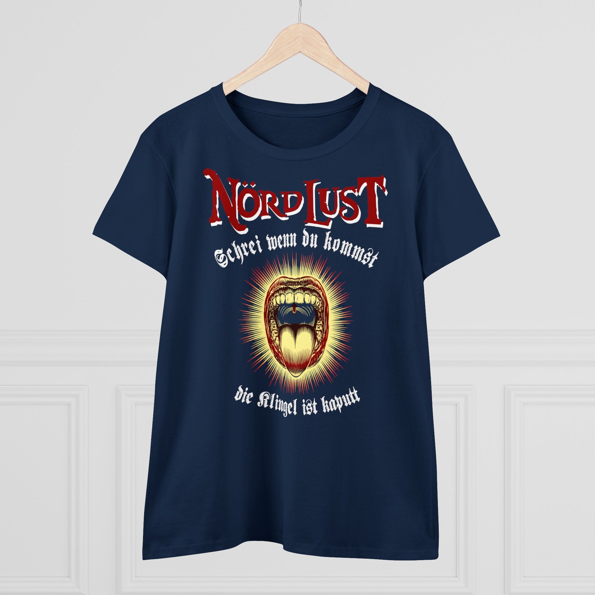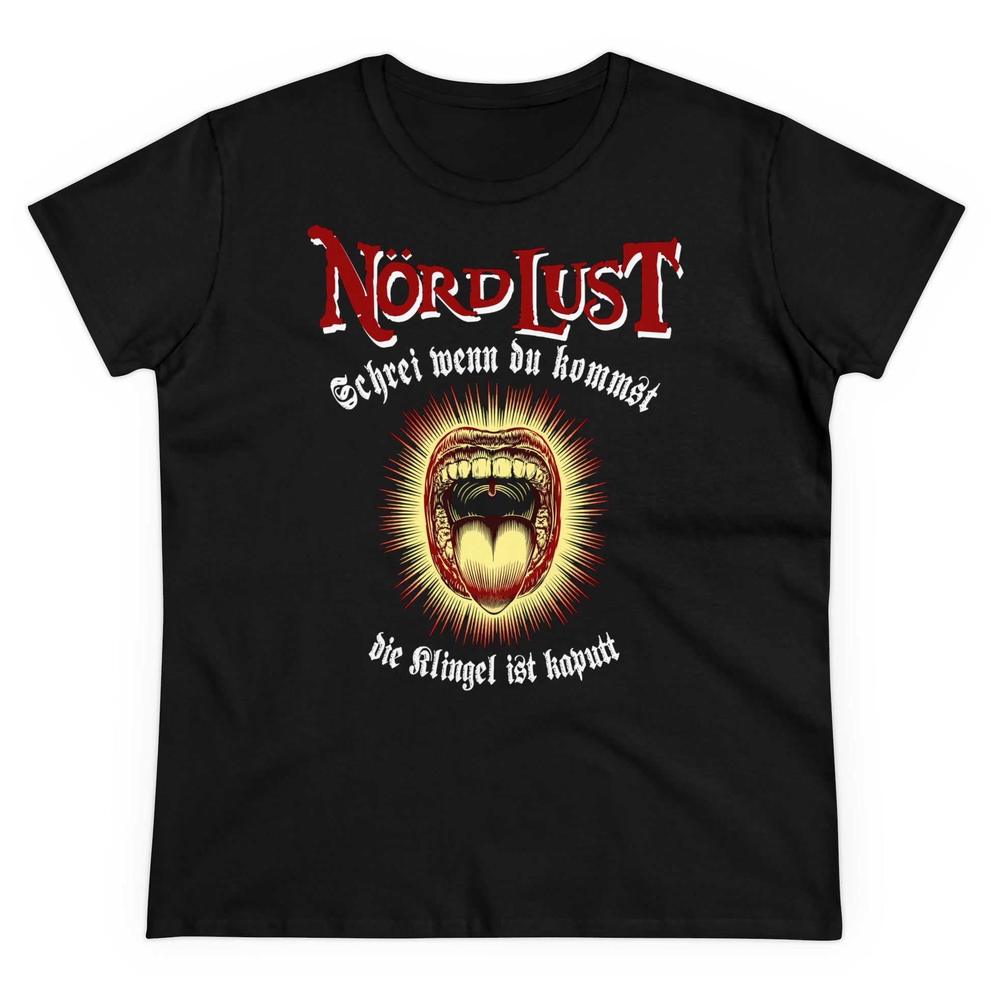 Damen T-Shirt NördLust Schrei wenn du Kommst, die Klingel ist kaputt