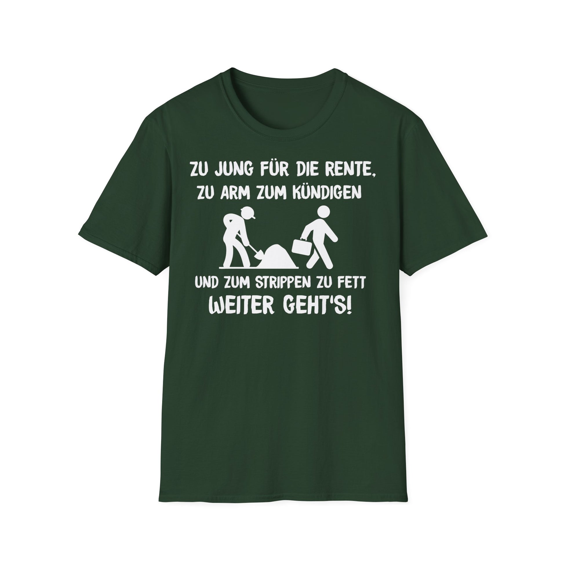 T-Shirt Zu Jung für die Rente, zu Arm zum Kündigen und zum Strippen zu Fett. Weiter geht's!
