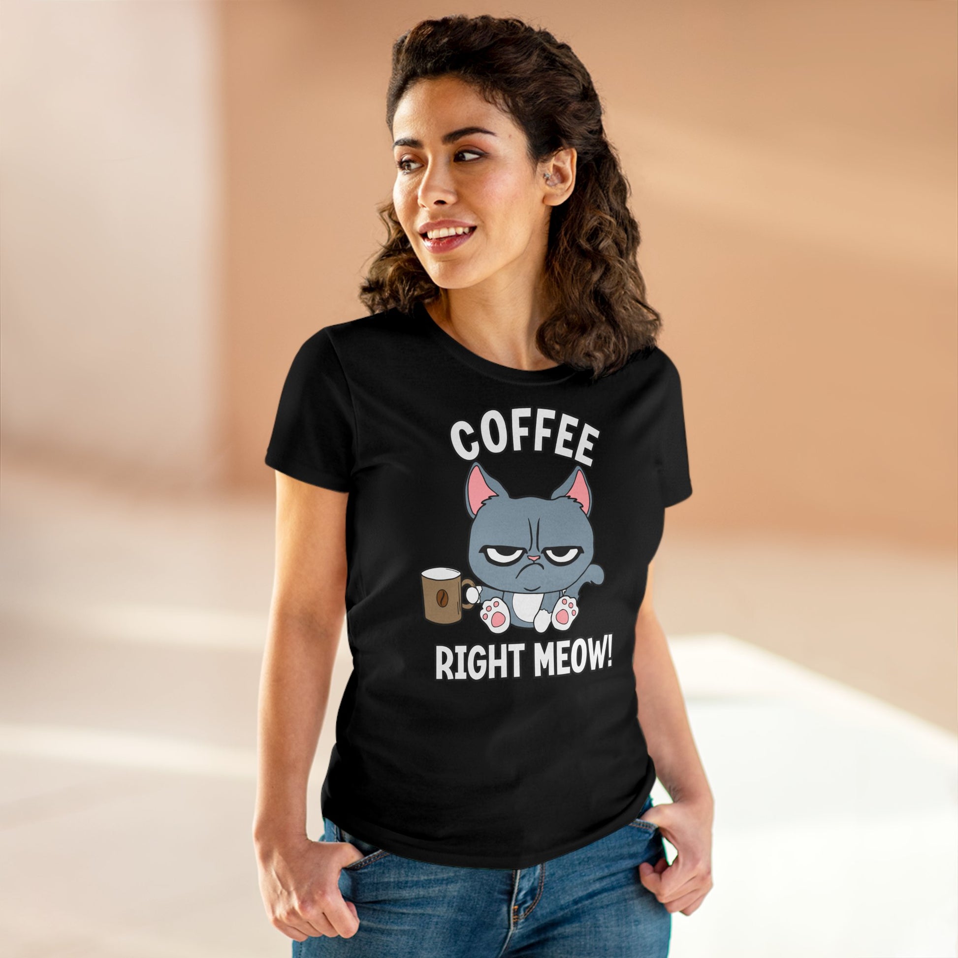 Damen T-Shirt Coffee right meow
