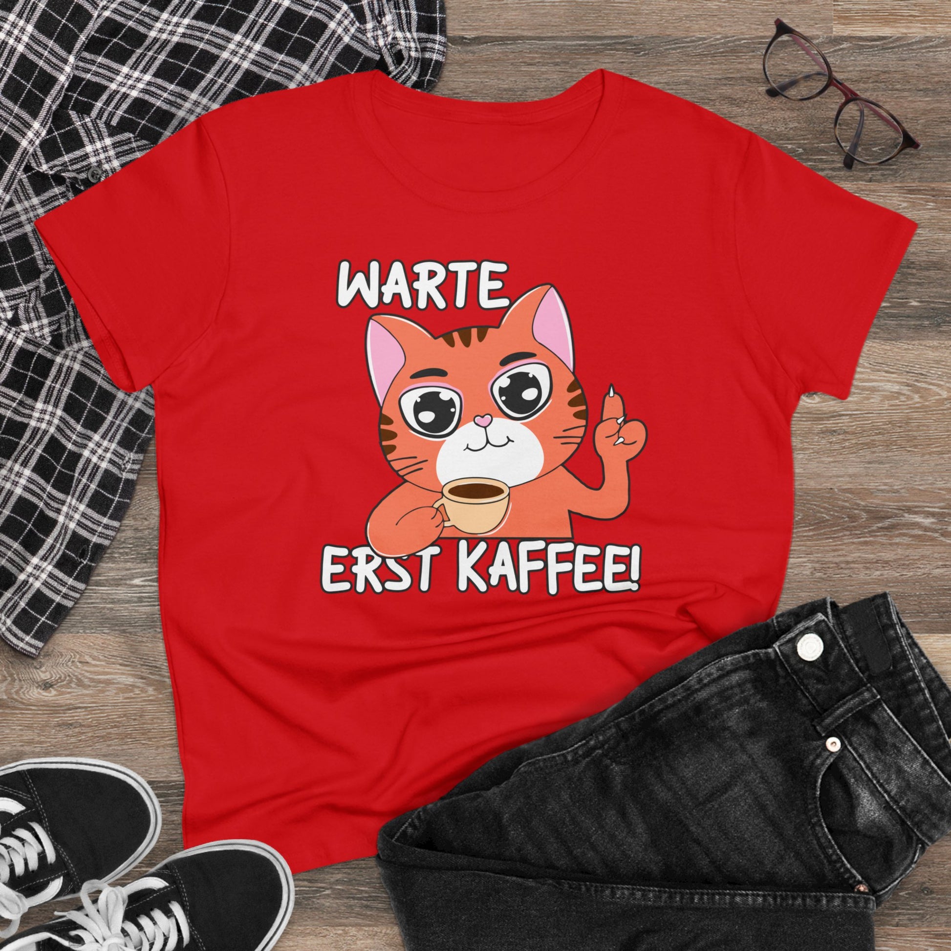 Damen T-Shirt Warte Erst Kaffee